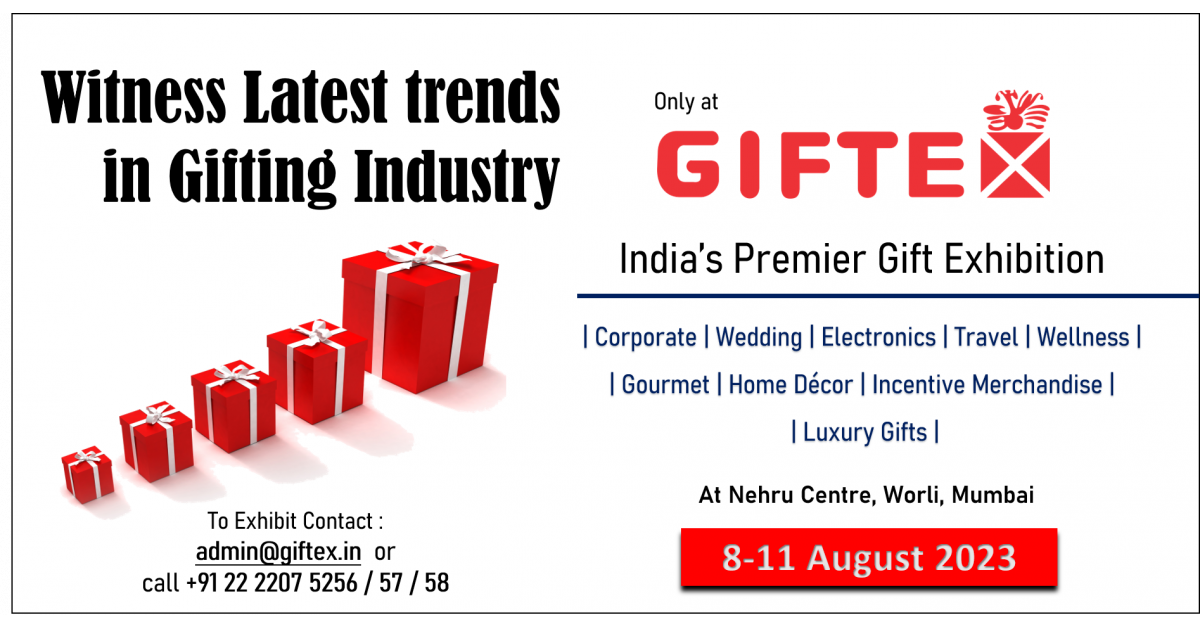 GIFTEX, A leading Gift expo organizer, is hosting its 36th edition of India’s Premier Gift Exhibition from August 8-11, 2023 at Nehru Centre, Worli – Mumbai.