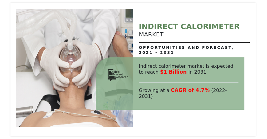 PORTLAND, OREGON, UNITED STATES, October 20, 2023 /EINPresswire.com/ — Indirect calorimeter market size was valued at $641.69 million in 2021, and is estimated to reach $1 billion by 2031, growing at a CAGR of 4.7% from 2022 to 2031. Indirect calorimeter is designed for studying the metabolic system of a patient. It involves the measurement of the respiratory gases, such as carbon dioxide and oxygen, for determining various outcome parameters. As information regarding these parameters, such as metabolic rate, nutritional requirements, and aerobic fitness, can help dieticians and nutritionists to cater to the specific needs of a patient, these devices are increasingly being deployed by healthcare establishments.