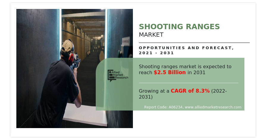 OREGAON, PORTLAND, UNITED STATES, May 18, 2023 /EINPresswire.com/ — The global shooting ranges market size was valued at $1,124.0 million in 2021, and is projected to reach $2,456.1 million by 2031, registering a CAGR of 8.3% from 2022 to 2031.