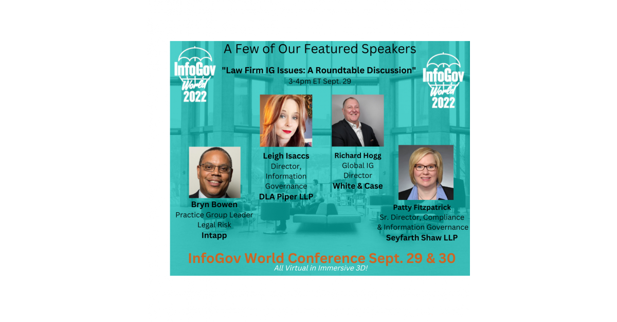 “We are pleased and proud to host such esteemed talent in the eDiscovery and law firm Information Governance space,” acknowledged Robert Smallwood, Chair of the InfoGov World 2022 Conference, and CEO of IG World journal. “This is an opportunity for those in the legal services business to gain from the experience and expertise of these leaders in the field.”