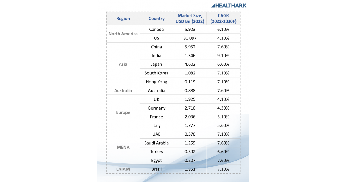 Insights10’s reports provide such in-depth analyses of the market with current trends and future estimations to bring out the most promising investment pockets. Data and insights with similar coverage are available for several other countries, spanning across all major regions of the world. Here is a glimpse of the Clinical Diagnostics market sizes (2022) and growth rates (2022-2030F) of some of the countries covered in our reports: