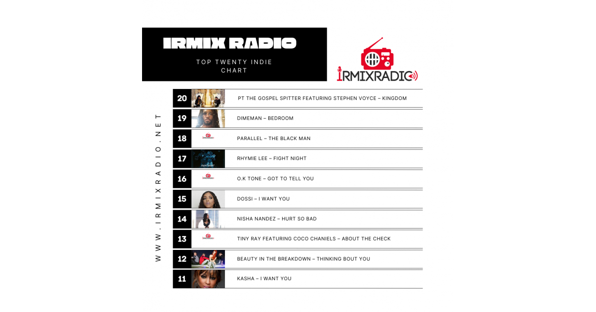 For the second week in a row, Intelligent Diva Featuring Sean Kingston soars at the top spot with Fly Together. IRMIX Radio saw a new entry into the top 20 countdown with PT the Gospel Spitter Featuring Stephen Voyce with Kingdom. IRMIX Radio’s Top 20 Indie Countdown is based on the number of plays and requests received for a particular artist and or track.