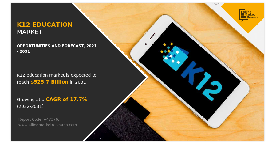 PORTLAND, PORTLAND, OR, UNITED STATES, July 12, 2023/EINPresswire.com/ — According to the report, the global K12 education market generated $103.5 billion in 2021, and is anticipated to generate $525.7 billion by 2031 witnessing a CAGR of 17.7% from 2022 to 2031. The report offers a detailed analysis of changing market trends, top segments, key investment pockets, value chains, regional landscapes, and competitive scenarios.