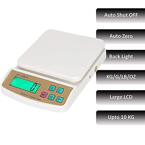 PLASTIC WEIGHT MACHINE FOR KITCHEN,HOME,SHOP.Wide LCD screen display, easy to read, Automatically locks the reading when data is stable Low power consumption, Low battery indicator, Tare function, Maximum Capacity 10kg The scale will automatically switched off when it is in non-use condition in order to save power High-precision tension meter sensing system, 1G Measuring Increments, Power by 1.5V 2 x AA batteries Color: White, With 3 Button on the scale, that’s on/off,Mode,Tare, Material: PVC