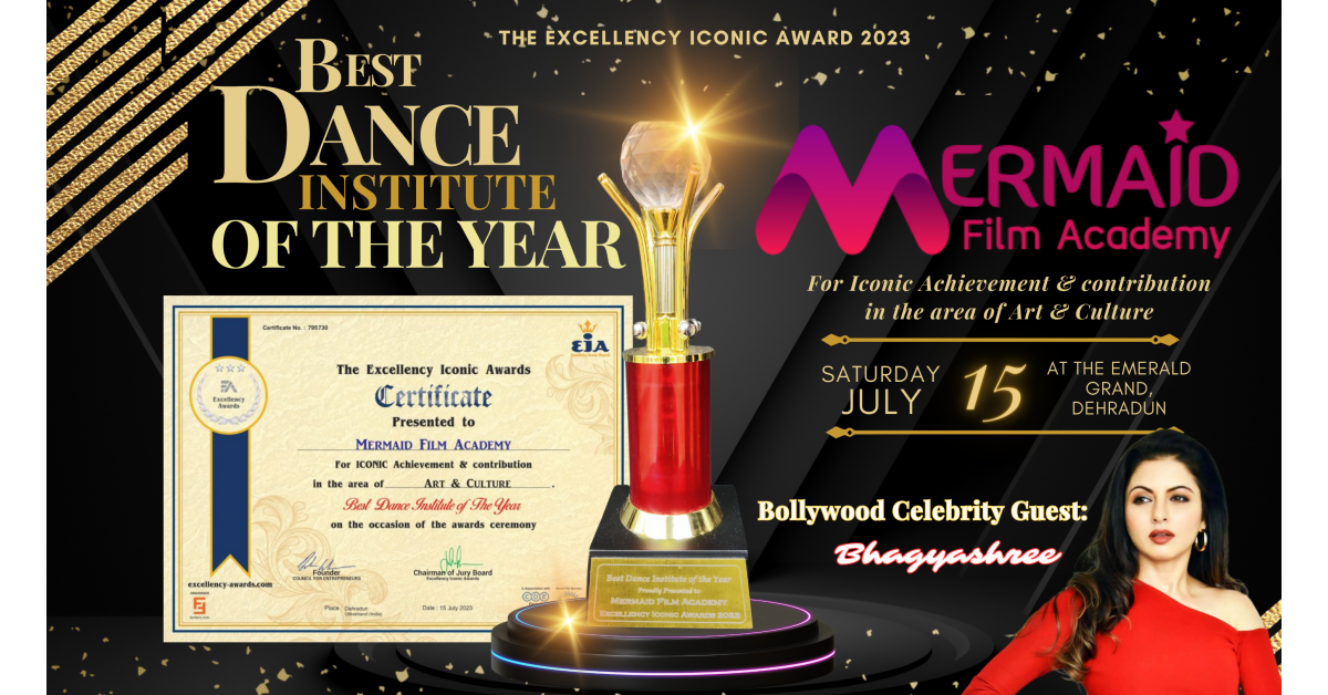 KOLKATA, WEST BENGAL, INDIA, August 4, 2023/EINPresswire.com/ — Mermaid Film Academy, a renowned dance school based in Kolkata, has been bestowed with the prestigious title of “Best Dance Institute of the Year” at the esteemed “The Excellency Iconic Award 2023.” The award ceremony witnessed the presence of the illustrious Bollywood celebrity guest, Bhagyashree, amidst a galaxy of stars, held in Dehradun, Uttarakhand, on 15th July 2023.