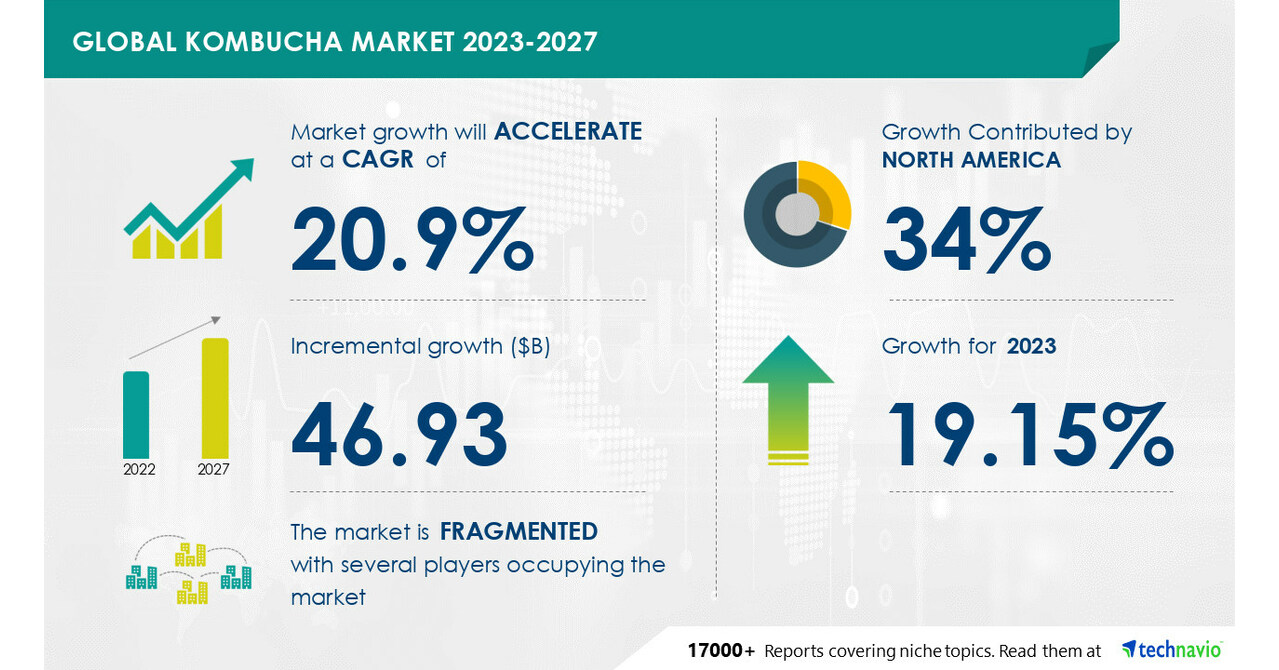 NEW YORK, Nov. 14, 2023 /PRNewswire/ — The kombucha market size is to grow by USD 3.56 billion from 2021 to 2026 and register a CAGR of 19.36%, according to Technavio’s latest market research report estimates. Some of the major companies in the kombucha market include Asheville Kombucha Mamas LLC, Brew Dr. Kombucha, Drink Artisan Ltd., GTs Living Foods, Health Ade LLC, Holy Kombucha Inc., Humm Kombucha LLC, Kosmic Kombucha, LIVE Soda LLC, Margaret River Kombucha Co. Pty Ltd., NessAlla Kombucha, PepsiCo Inc., Red Bull GmbH, Remedy Drinks, Revive Drinks, Rowdy Mermaid Kombucha, Suja Life LLC, The coca-cola co., and The Hain Celestial Group Inc. To help businesses improve their market position, Technavio’s report provides a detailed analysis of around 25 companies operating in the market. To leverage the current opportunities, market companies must strengthen their foothold in the fast-growing segments, while maintaining their positions in the slow-growing segments. Backed with competitive intelligence and benchmarking, our research reports on the kombucha market are designed to provide entry support, customer profile & M&As as well as go-to-market strategy support.Technavio offers an up-to-date analysis of the current global market scenario and the overall market environment. Read Sample Report