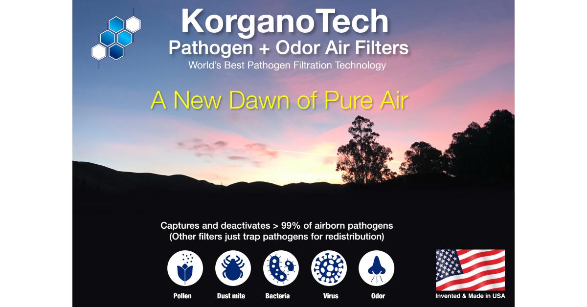 “We are excited to make our innovative KorganoTech Pathogen air filters available for purchase. We believe that our filters effectively deactivate pathogens (viruses, bacteria, and microorganisms) more effectively than traditional air filter solutions available today.” said Tim Leong, CEO of KorganoTech.