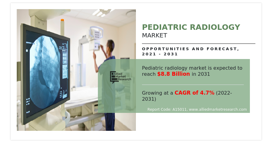 The global pediatric radiology market generated $5.6 billion in 2021, and is estimated to reach $8.8 billion by 2031, witnessing a CAGR of 4.7% from 2022 to 2031.