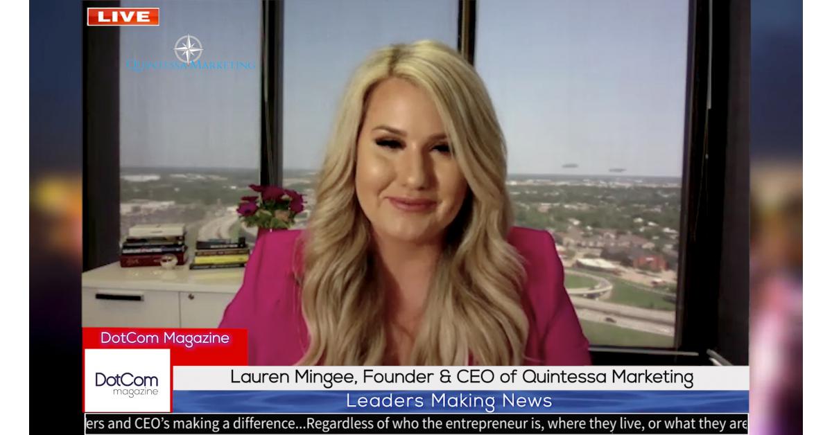 Andy Jacob, CEO of DotCom Magazine says, “The interview with Lauren Mingee was amazing. The success of Quintessa Marketing is a true testament to their team and their people. It was a real honor to have Lauren Mingee on the video series.
