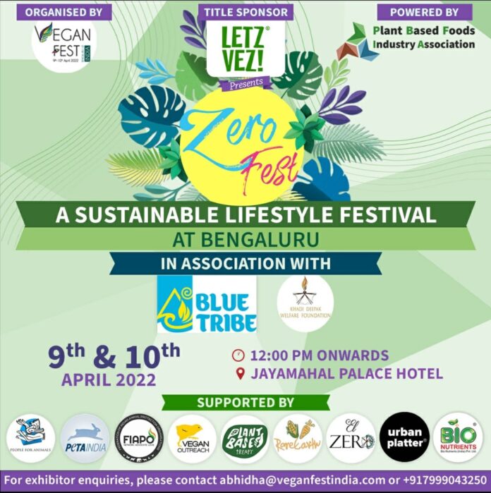 Let’s Vez and Vegan Fest are organising India’s first Zero Fest, a two-day lifestyle festival celebrating sustainability and veganism to be held on the 9th and 10th of April 2022 in Bengaluru. Sowmya Reddy, Member of the Karnataka Legislative Assembly and General Secretary of All India Mahila Congress of Karnataka will be inaugurating Zero Fest. Popular actresses Preetika Rao and Ashvithi Shetty to attend the event.