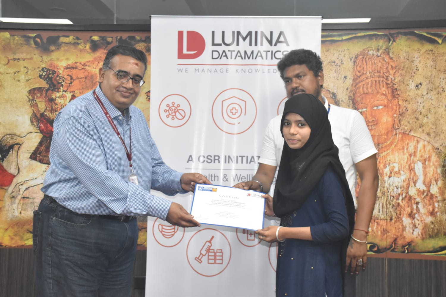 Chennai, India – April 28, 2022: Lumina Datamatics® Limited, one of the largest service providers to global publishers and eCommerce companies, on Thursday, April 21, 2022, hosted the beneficiaries of one of its corporate social responsibility programmes run in collaboration with Chennai’s Aaruthal Foundation to award them with certificates of completion.