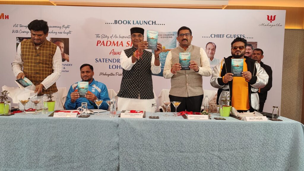 The book, unveiled at a press conference organized on February 8, 2024, by the Madhya Pradesh Sports Minister Mr. Vishwas Sarang, delves into the remarkable story of Satendra Singh Lohiya. Secretary MSME and Sports and senior IAS Mr P Narhari, Padamshri awardee Satendra Singh Lohiya and authors of the book – Dr Rakesh Chandra and Rishikesh Pandey – were present on the occasion.