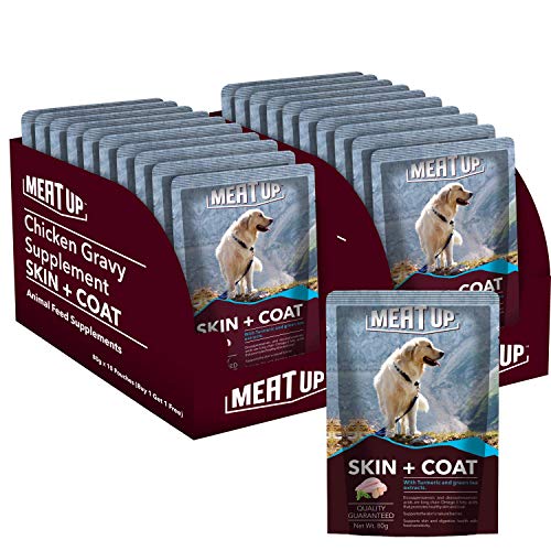 Meat Up skin and coat gravy is a lip smacking meal that is rich in aroma which boosts the appetite of your pet. The water content restores the moisture level in the food. High quality protein from chicken and egg with the combination of fatty acids, vitamins, biotin and zinc makes the skin lustrous and bouncy. A wholesome food with all the nutritional value keeps your pet happy and agile throughout.