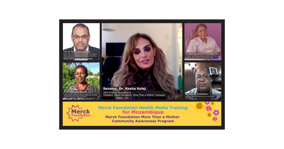 Merck Foundation, the philanthropic arm of Merck KGaA Germany organized their first “Merck Foundation Health Media Training” by way of Videoconference in Mozambique, in partnership with H.E. Mrs. ISAURA FERRAO NYUSI, The First Lady of Mozambique & Ambassador of Merck Foundation “Mother Than a Mother” Campaign, University Eduardo Mondlane & National Union of Journalists, Mozambique. The Health Media Training was chaired by Senator, Dr. Rasha Kelej, CEO of Merck Foundation.