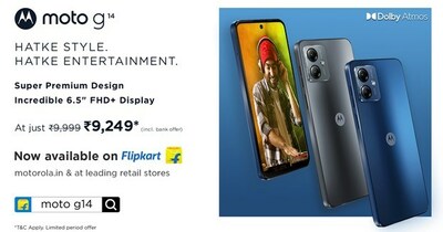 View original content to download multimedia:https://www.prnewswire.com/in/news-releases/moto-g14-the-sub-10k-segment-disruptor-with-a-super-premium-design-immersive-6-5-fhd-display-to-go-on-sale-starting-8th-august-on-flipkart-and-leading-retail-stores-at-just-rs-9-999–301895807.html