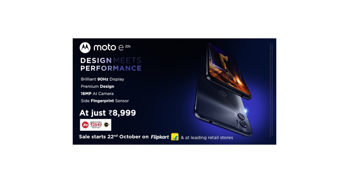 Available in two superb colour variants, Eco Black and Arctic Blue, the moto e22s will go on sale from 22nd October, 12 midday onwards on Flipkart and all main retail shops.