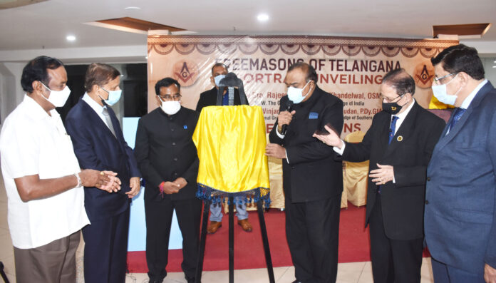 Mr. Rajeev Khandelwal, Grand Master, the head of Freemasonry in India unveiled the portrait of Mr. VG Madhusudan, Regional Grand Master of Regional Grand Lodge of Southern India in a function held on Sunday night in the city at Nizam Club. Mr. VG Madhusudan is the head of Freemasonry in South India. The Portrait of Regional Grand Master is unveiled once every three years.