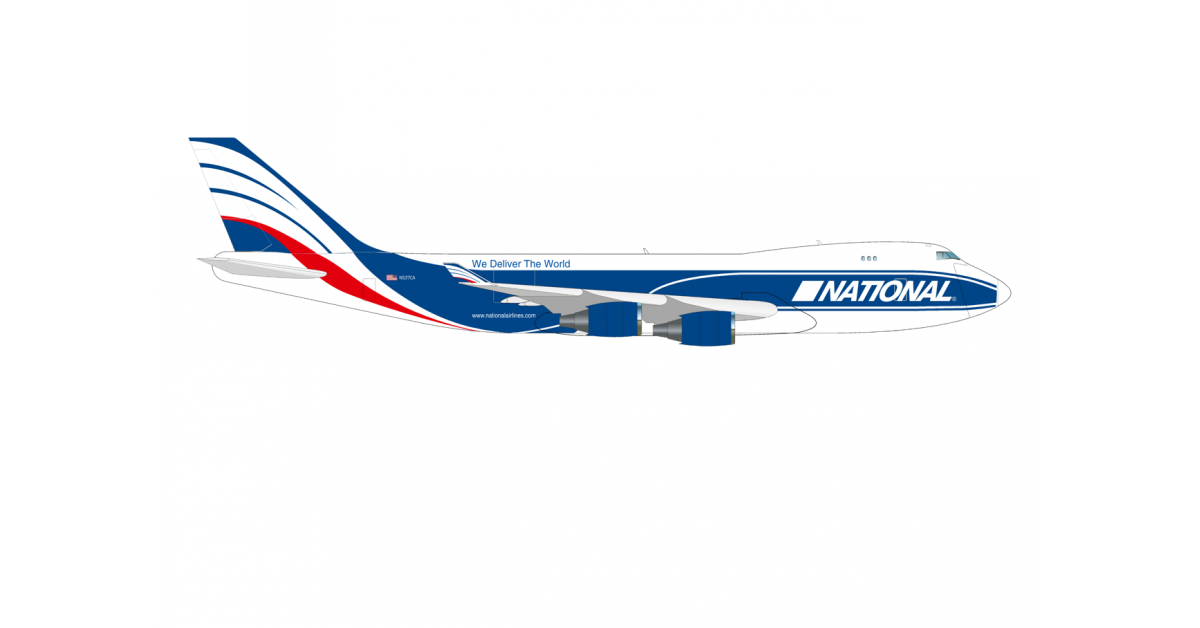 U.S. primarily based National Airlines broadcasts the arrival of a Boeing 747-400F, Factory Freighter, to its fleet.