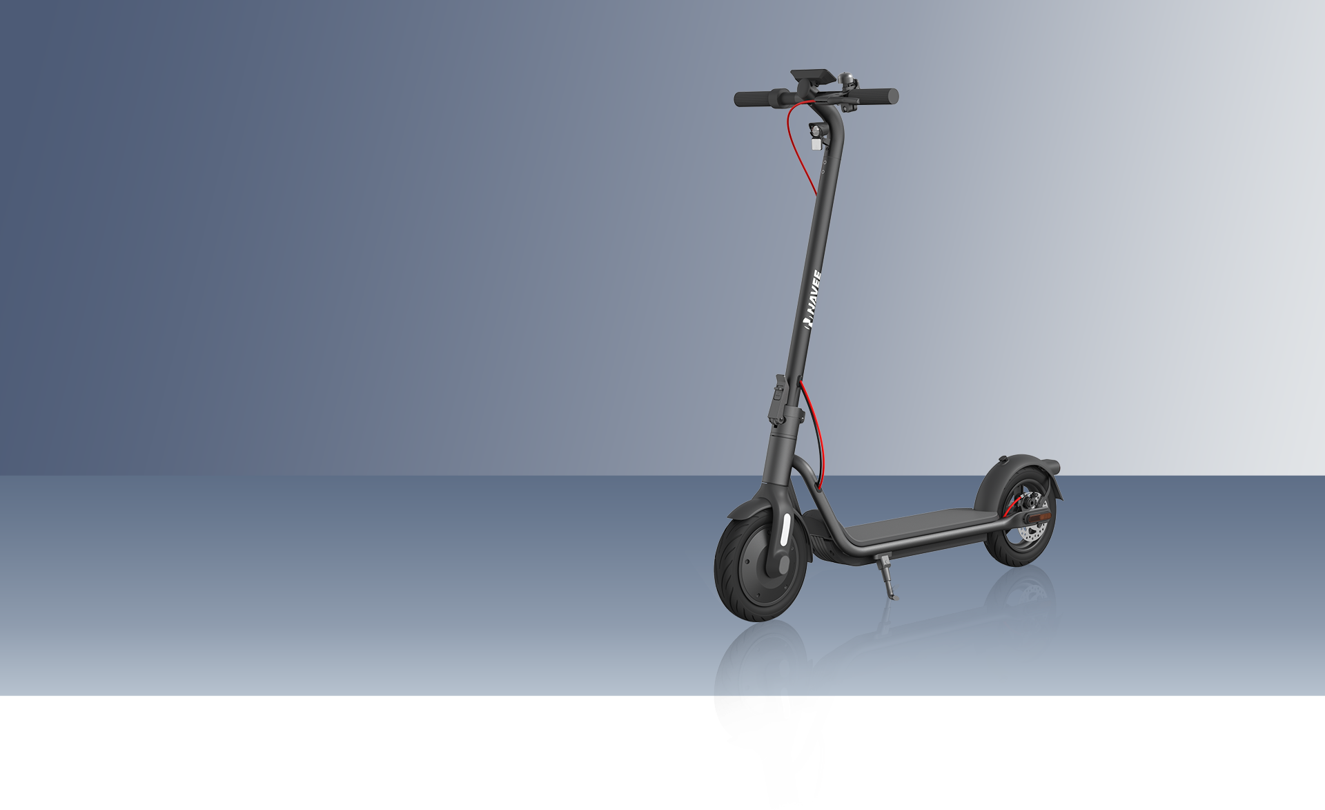 The NAVEE V40 brings premium comfort to an affordable price range. Sporting 10-inch pneumatic tires, the NAVEE V40 smoothly rolls over bumps and short curbs. In addition, its wide deck provides a stable standing platform, while its gripped handlebars put riders in control over their motion.