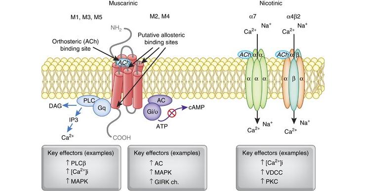 Muscarinic acetylcholine receptors are subtype of acetylcholine receptors. In the cell membranes of certain neurons and other cell ,protein-receptor complexes.