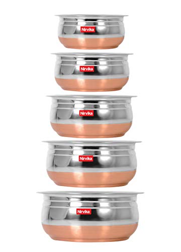 Nirvika Stainless Steel copper Bottom Punjai Handi:- The Handi is made of good quality materials which sure to add to its durability. It is highly stable and can stand strong.