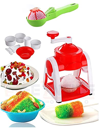 Manual gola maker with slush maker and ice Crusher made from virgin plastic.Rust resistant, Handy, Non- Electric appliance, portable thus can be used outdoors as well.