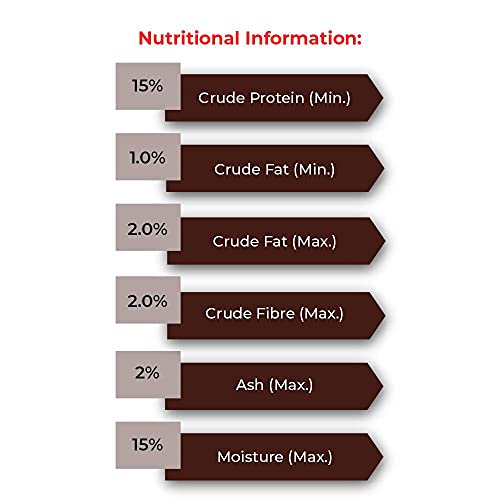 CRUDE PROTEIN: 15.0% MIN, CRUDE FAT: 1.0% MIN, CRUDE FAT:2.0% MAX, CRUDE FIBER: 2.0% MAX, MOISTURE: 15.0% MAX, ASH3.0% MAX