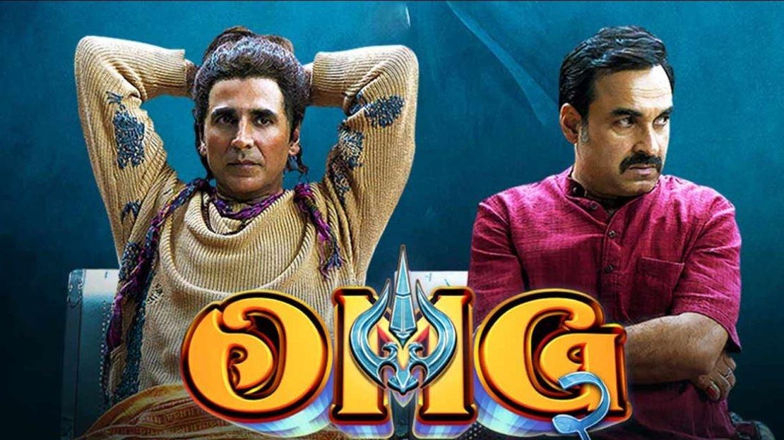 Indian actors Akshay Kumar and Pankaj Tripathi on a poster of the Hindi film ‘OMG 2’.