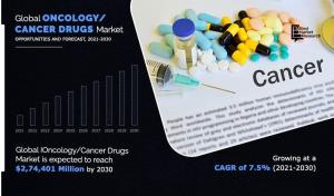PORTLAND, OREGON, UNITED STATES, April 11, 2023 /EINPresswire.com/ — Cancer is a devastating disease that affects millions of people around the world every year. Despite significant progress in research and treatment, cancer remains a leading cause of death worldwide. However, recent advances in oncology/cancer drugs have brought new hope for better treatment and management of this disease. One of the most significant developments in cancer treatment in recent years has been the development of targeted therapy. Unlike traditional chemotherapy, which kills both cancerous and healthy cells, targeted therapy uses drugs that specifically target the cancer cells, while leaving healthy cells unaffected. This approach not only reduces side effects but also enhances the effectiveness of treatment. The global oncology drugs market size was valued at $135,494.17 million in 2020, and is projected to reach $274,400.63 million by 2030, registering a CAGR of 7.5% from 2021 to 2030.