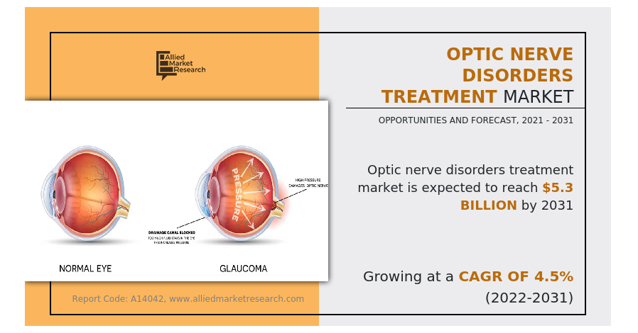 PORTLAND, OREGON, UNITED STATES, July 14, 2023/EINPresswire.com/ — Optic nerve disorders encompass a range of conditions that affect the optic nerve, which is responsible for transmitting visual information from the eyes to the brain. These disorders can lead to vision loss or impairment and require appropriate treatment to manage the underlying cause and preserve visual function. The global optic nerve disorders treatment market size was valued at $3.4 billion in 2021, and is projected to reach $5.3 billion by 2031, growing at a CAGR of 4.5% from 2022 to 2031.