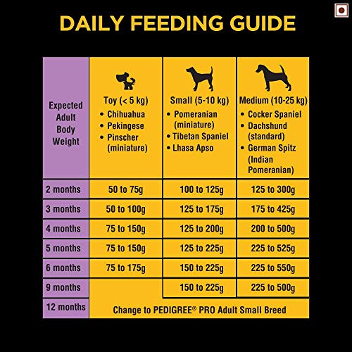 Different dog breeds have different nutritional needs, depending on their size and respective weight. Small breed puppies such as Cocker Spaniel, Lhasa Apso, Pug, German Spitz and Beagle grow faster and achieve adulthood earlier, which is why, nutrient rich and protein rich meals like Pedigree PRO help support their growth. IAlso, Prebioitics (MOS) help maintain digestive health of your dogs, making it an ideal food for dogs. Pedigree PRO dog food range of products combine high quality ingredients with the science developed with nutritionists and veterinarians at the Waltham Centre.