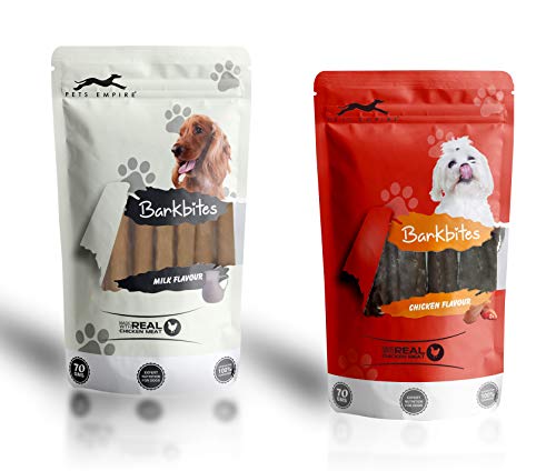BARKBITES is made of pure chicken meat and is carefully prepared to provide a pure tasty and highly digestible meal. Best Snacks for your pet. Buy it From Pets Empire Only. Fine Natural Meat Snack for Dogs. For best health and digestion. BUYER BEWARE : This Product is Sold Exclusively by Pets Empire and we have not authorized any other Sellers to sell this product, hence we can not Guarantee the Quality if purchased from any seller other than Pets Empire Regular chewing of treats reduce building of tartar and reduce bad smell in dogs Soft Snacks Easy to chew