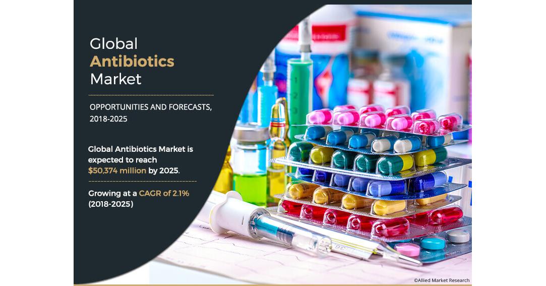 Allied Market Research has published a study report with the title Antibiotics Market Size is Projected to Garner USD 50.37 billion by 2025, registering a CAGR of 2.1% During Forecast Period.