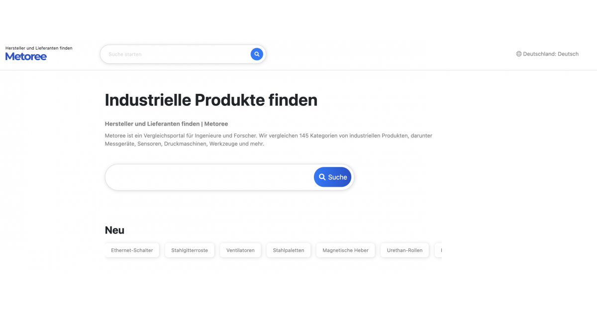 Metoree startet in Deutschland: Die Plattform ermöglicht Vergleich von Industrieprodukt-Herstellern & Lieferanten. Expansion und Kategorie-Erweiterung geplant.