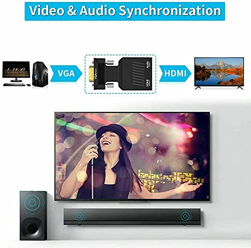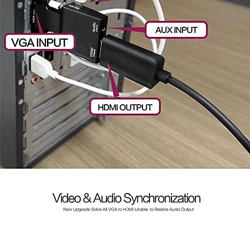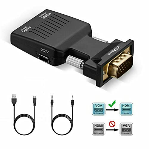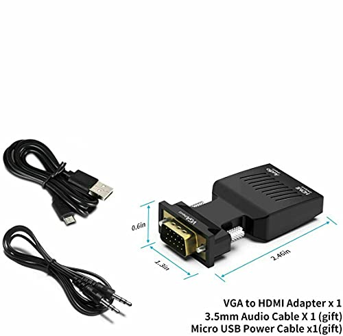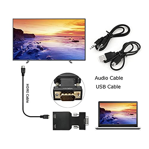 Tobo VGA Male to HDMI Female Video Audio Converter with USB Cable and 3.5mm Audio Cable