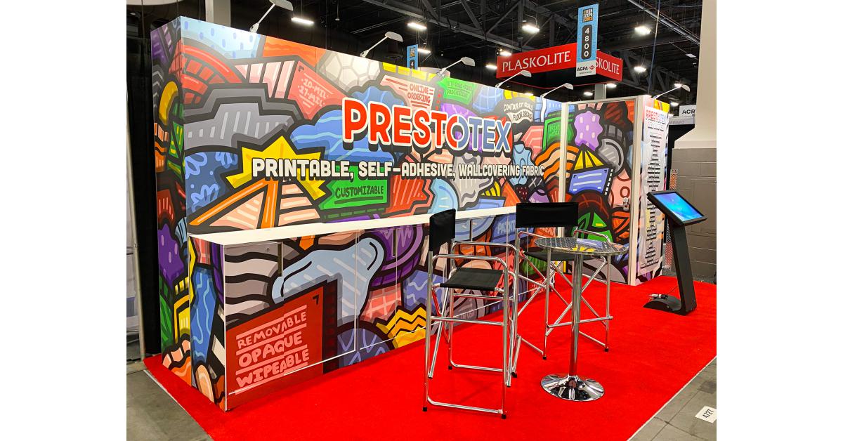 BENSALEM, PA, UNITED STATES, April 25, 2023/EINPresswire.com/ — PrestoTex, a leading provider of innovative print media based in Bensalem, PA, featured their collaboration with Philadelphia artist Alloyius McIlwaine to create a show-stopping booth design. The booth wrap featured McIlwaine’s energetic, street-style artwork printed on PrestoTex 17-mil and 10-mil print media.