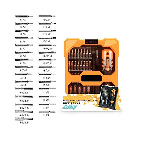 33 in 1 Electronics Repair Tool Kit with 29 different kinds of bits, such as torx,pentalobe(for iPhone, MacBook) , phillips, flathead screwdriver bit