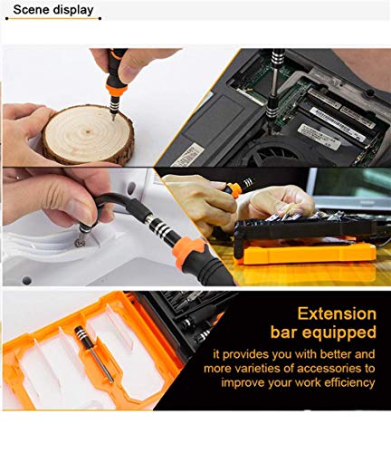 Package Included: 1 × 105mm Non-slip handle 1 × 115mm Anti-static tweezer 1 × 60mm Extension rod 1 × 100mm Flexible shaft bar 29 × Screwdriver bits