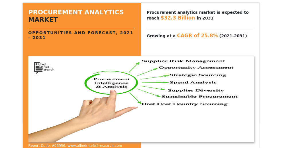 PORTLAND, PORTLAND, OR, UNITED STATES, August 8, 2023/EINPresswire.com/ — According to the report, the global procurement analytics industry is estimated to generate $3.3 billion in 2021 and $32.3 billion by 2031, witnessing a CAGR of 25.8% from 2022 to 2031. The report offers a detailed analysis of changing market trends, top segments, key investment pockets, value chain, regional landscape, and competitive scenario.