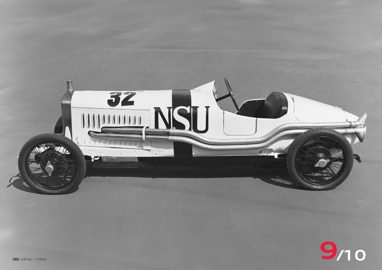 NSU participated in international automobile races as early as 1908. The company’s participation in the 1909 Prince Henry Tour — and numerous endurance and reliability races — was a great success. After World War I, the Automobil-Verkehrs- und Übungsstraße (AVUS) opened in Berlin in 1921. The circuit, which was closed to public traffic until 1940, served as the first race and test track in Germany to demonstrate the competitiveness of the country’s automotive industry. A “small” NSU, the NSU 8/24 PS, won its class at the first AVUS race in September 1921. The basic design of the racing version was the same as the production model; all the Neckarsulm-based company had to do was modify the car slightly to create an open-top racing two-seater.