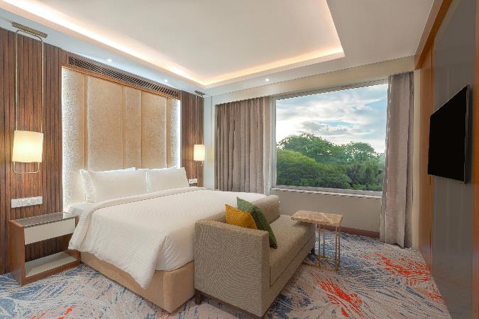 Park Inn by Radisson Ayodhya features well-appointed rooms and suites designed for comfort and relaxation. Each room is adorned by stone accents, large windows, and pleasing interiors that display a blend of modern and traditional elements, ensuring a comfortable stay for the guests. The hotel also provides amenities such as a swimming pool and a fully equipped gym for guests seeking relaxation or an invigorating workout.
