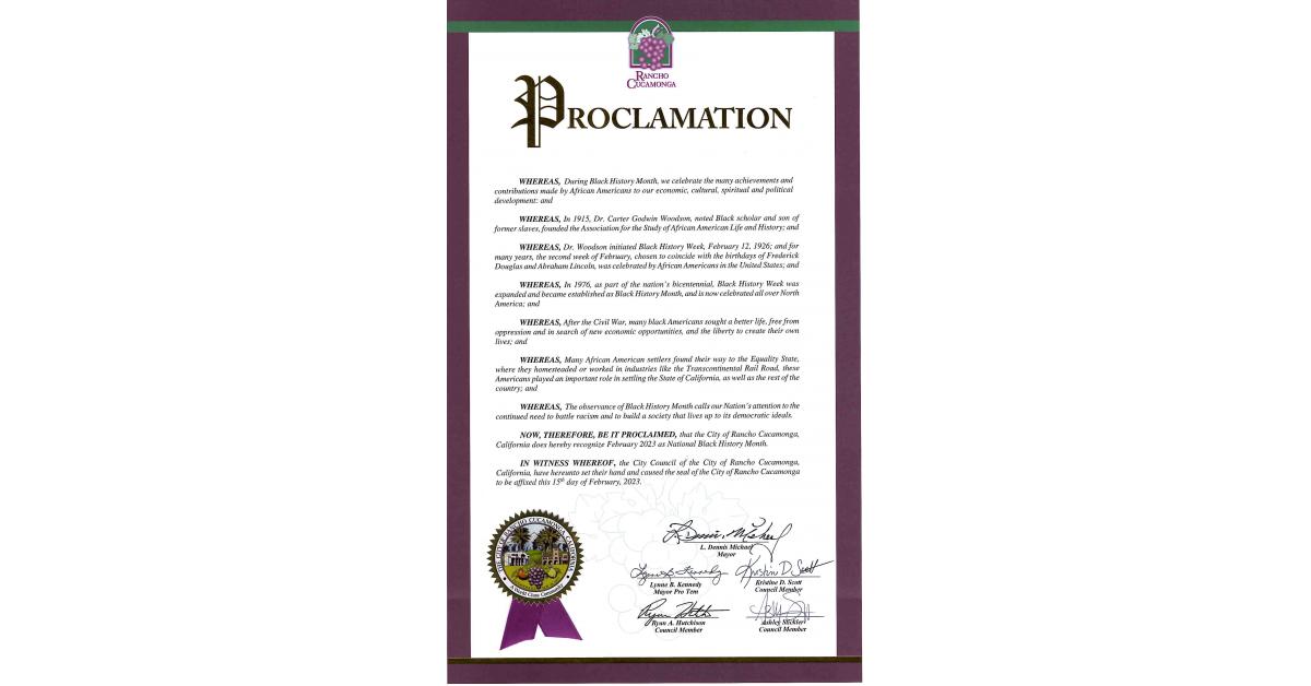 City of Rancho Cucamonga 2023 Black History Month Proclamation