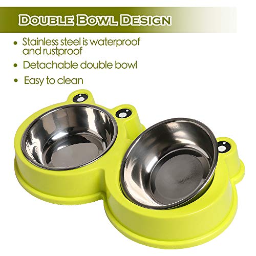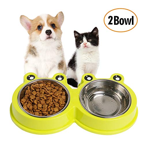 his pet dinner set has double dog bowls.Made of high quality stainless steel, It offers a healthier alternative to plastic, one for food and the other for water, choosing bright colors which will attract pets’ interest, make it much fun for the dog or cat while eating.