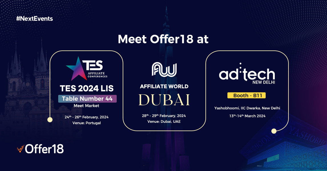 Speaking on the significance of these events, Offer18 senior spokesperson Suraj Grover, Head of Marketing, said: Offer18 is very much in the thick of affiliate marketing events, and we feel chuffed about participating in these exquisite events. Being a part of these events aligns with our philosophy of staying at the forefront of performance marketing. We look forward to rubbing our shoulders with potential partners, industry veterans, and other affiliates in the marketing business, thereby showcasing how you can unleash our Performance Tracking Software to its full potential to reap benefits for your business.