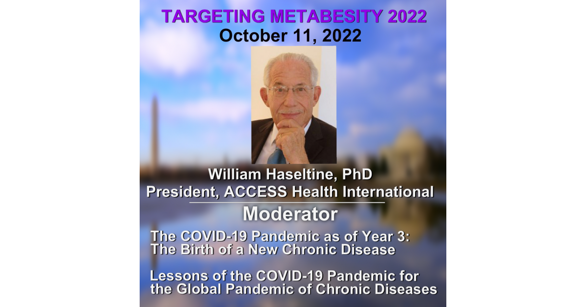 Dr. William Haseltine, President of ACCESS Health International, will reasonable All-Star Panel on at the Targeting Metabesity 2022 convention on October 11, 2022