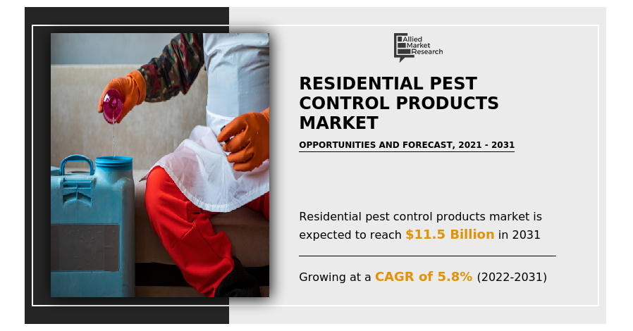 PORTLAND, 5933 NE WIN SIVERS DRIVE, #205, UNITED STATE, October 13, 2023 /EINPresswire.com/ — According to a new report published by Allied Market Research, titled, “Residential Pest Control Products Market,” The residential Residential Pest Control Products Market Size was valued at $6.6 billion in 2021, and is estimated to reach $11.5 billion by 2031, growing at a CAGR of 5.8% from 2022 to 2031.