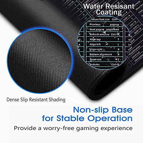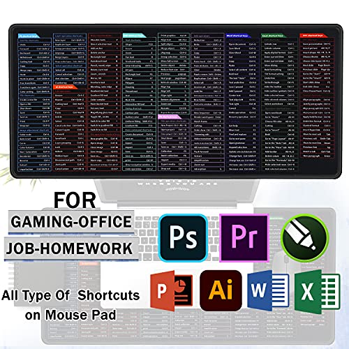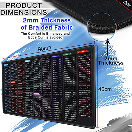RiaTech Extended Gaming Mouse Pad ,Thick Non-Slip Rubber Base Mouse pad Cloth Surface Keyboard Mouse Pad (900x400mmx2mm, Office Software Shortcut)