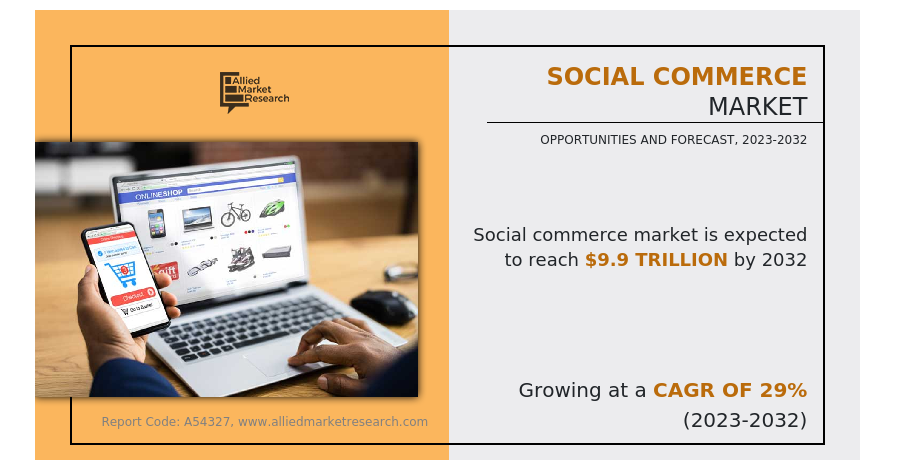 PORTLAND, OREGON, UNITED STATES, July 21, 2023/EINPresswire.com/ — According to a new report published by Allied Market Research, titled, “Social Commerce Market,” The social commerce market size was valued at $784 billion in 2022, and is estimated to reach $9864.6 billion by 2032, growing at a CAGR of 29% from 2023 to 2032.