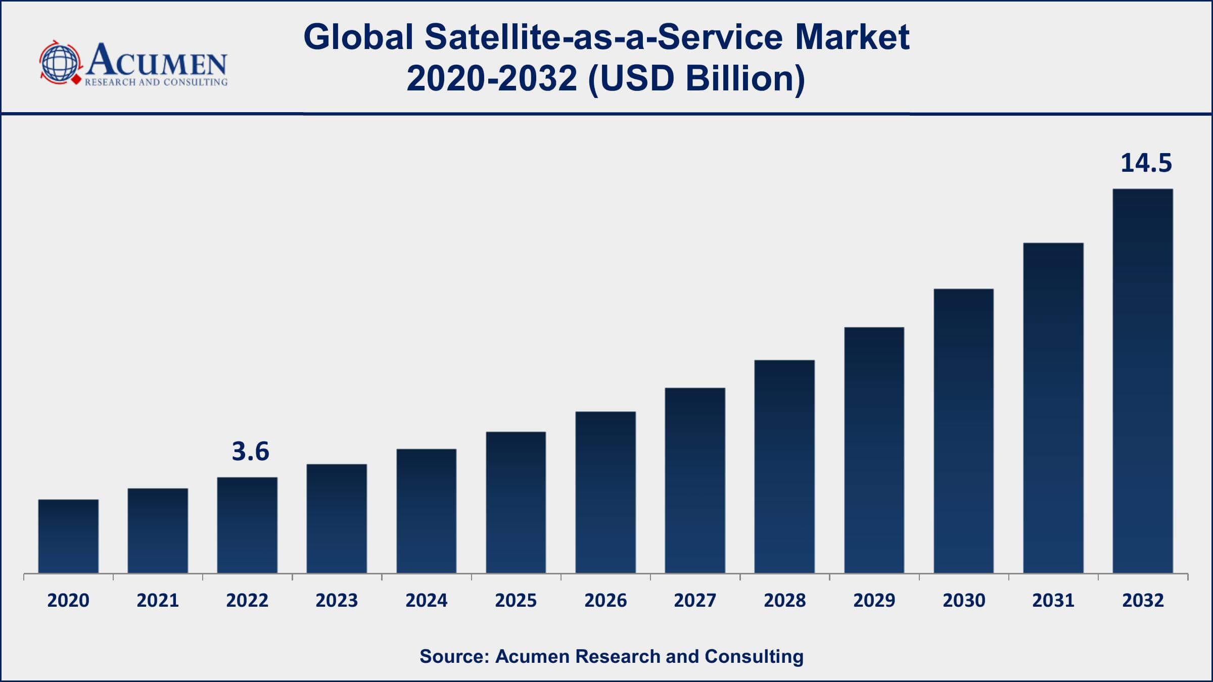 - The Satellite-As-A-Service Market is estimated to reach a significant valuation of USD 14.5 billion by 2032 propelling from the current cap of USD 3.6 Billion in 2022, exhibiting a promising CAGR of 15.1% during the period from 2023 to 2032.