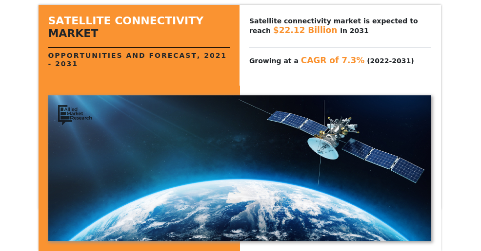 PORTLAND, OR, UNITED STATES, March 15, 2023 /EINPresswire.com/ — According to a new report published by Allied Market Research, titled, “Satellite Connectivity Market,” The satellite connectivity market was valued at $11.12 billion in 2021, and is estimated to reach $22.12 billion by 2031, growing at a CAGR of 7.3% from 2022 to 2031.